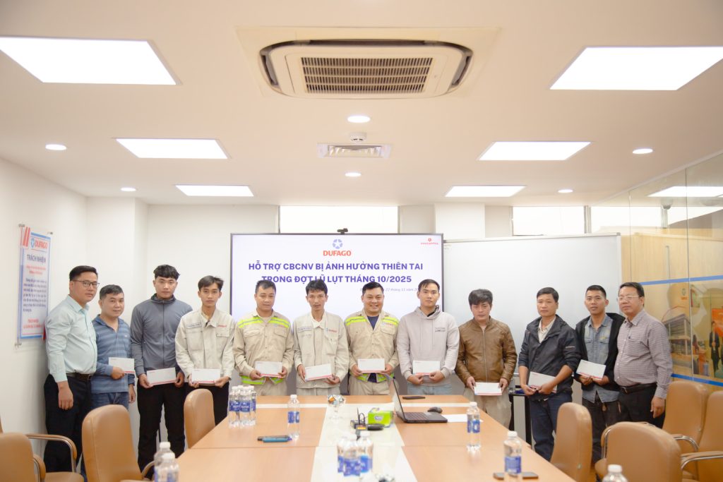 Đợt mưa lũ lịch sử diễn ra vào tháng 10 năm 2025 đã gây ra những tổn thất nặng nề, ảnh hưởng sâu sắc đến đời sống và sinh hoạt của nhiều cán bộ, công nhân viên (CBCNV) Công ty Cổ phần Dufago. Với tinh thần trách nhiệm và sự sẻ chia, Ban Lãnh đạo Công ty đã nhanh chóng triển khai các đợt hỗ trợ liên tiếp nhằm kịp thời động viên và giúp đỡ người lao động vượt qua khó khăn.