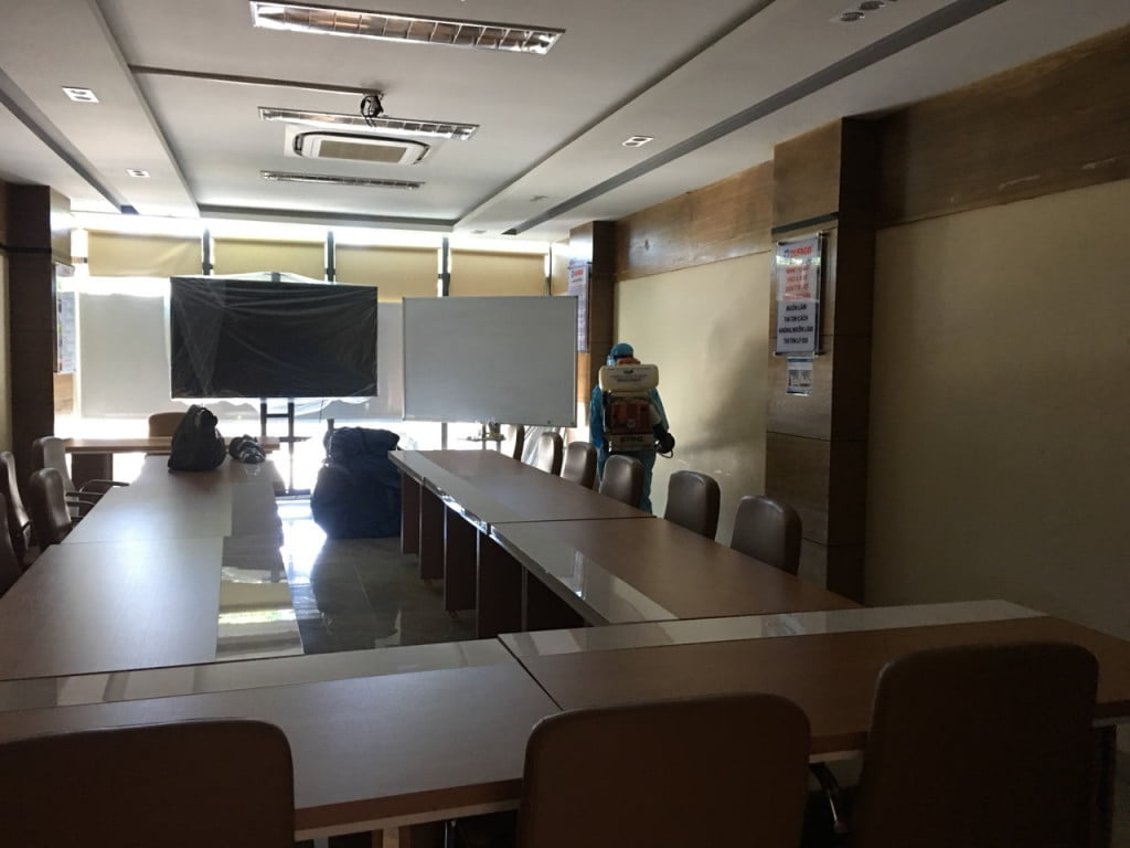 Dufago thực hiện phun thuốc sát khuẩn Chloramin B toàn bộ văn phòng Công ty nhằm khử trùng đảm bảo sạch sẽ và an toàn tại nơi làm việc giảm nguy cơ phơi nhiễm COVID 19 .