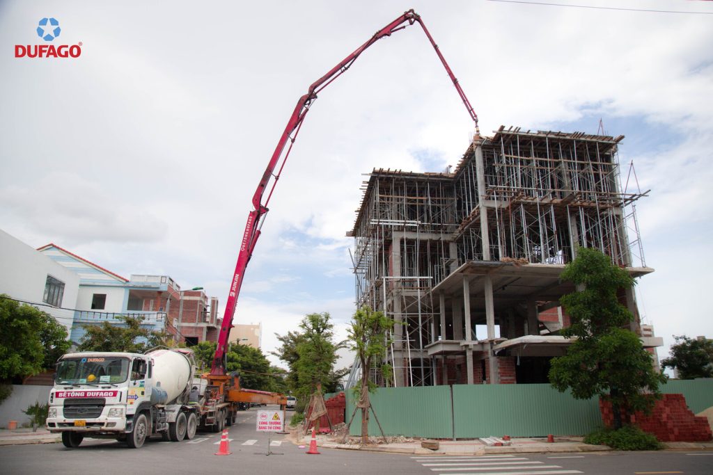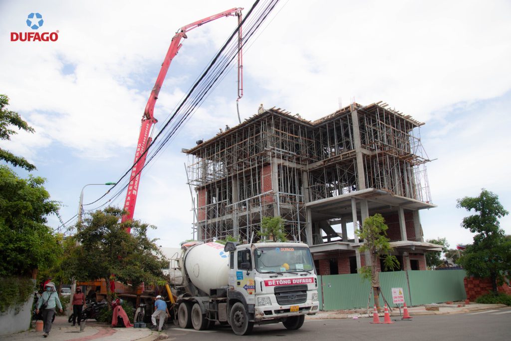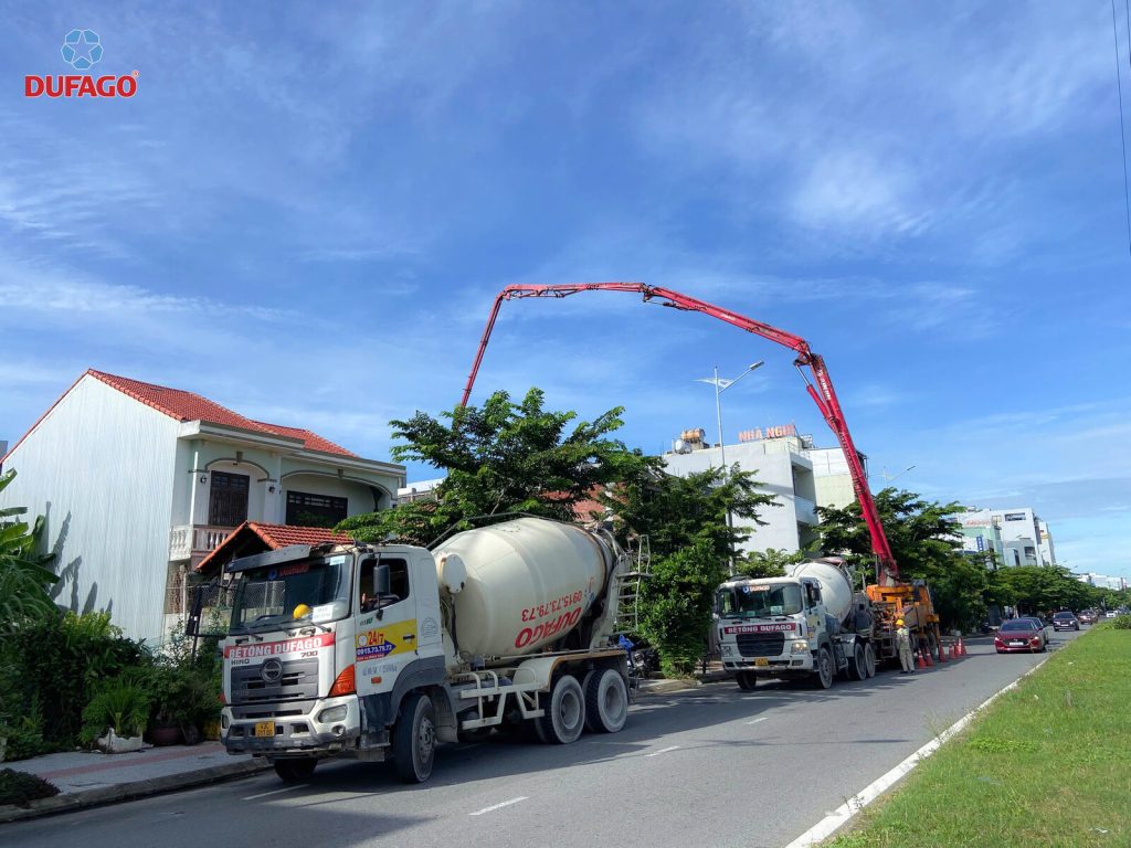 Hoạt động đổ bê tông nhà phố Đà Nẵng trong tháng 6 diễn ra cực kỳ sôi động. Các trạm trộn bê tông của Dufago hoạt động liên tục, xe bồn nối đuôi nhau toả đi khắp các công trình.