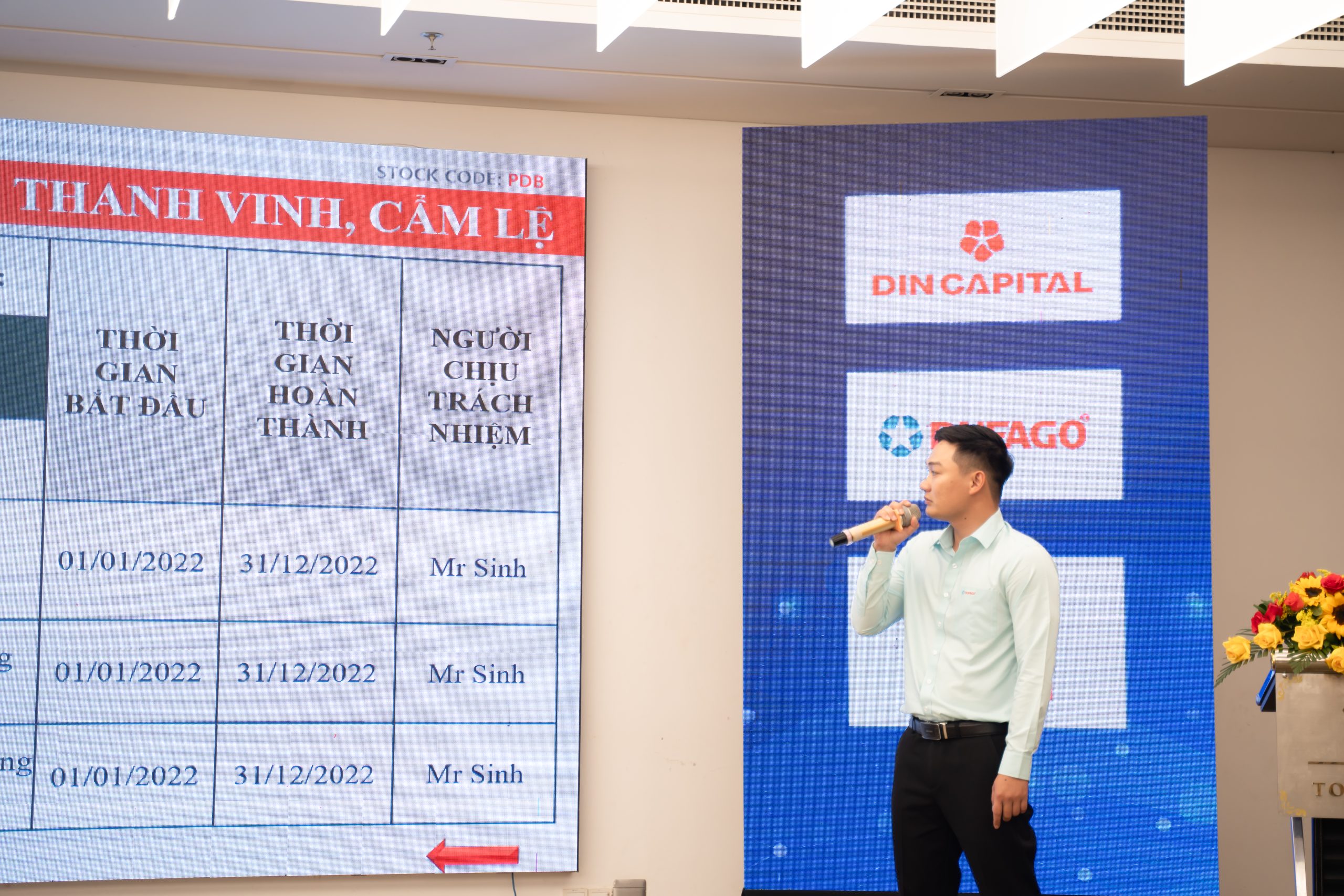 Ông Mai Sinh- Quản lý trạm trình bày mục tiêu chiến lược 2023 của Nhà máy Thanh Vinh và Nhà máy Cẩm Lệ